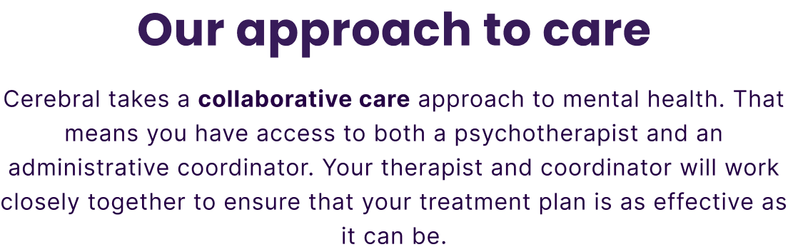 Your mental health deserves ongoing, long-term care. Clinical research shows that those who meet with a therapist weekly feel better faster, so make sure that you're regularly scheduling appointments! If you decide that they aren’t a great fit, don’t worry! You can change your therapist anytime.
